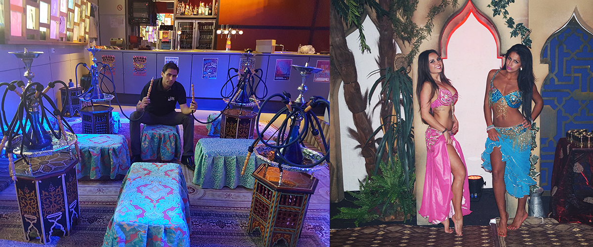 Oosters Thema feestje Dj bij de waterpijp kameel te huur Bolywood danseressen Vuurshow